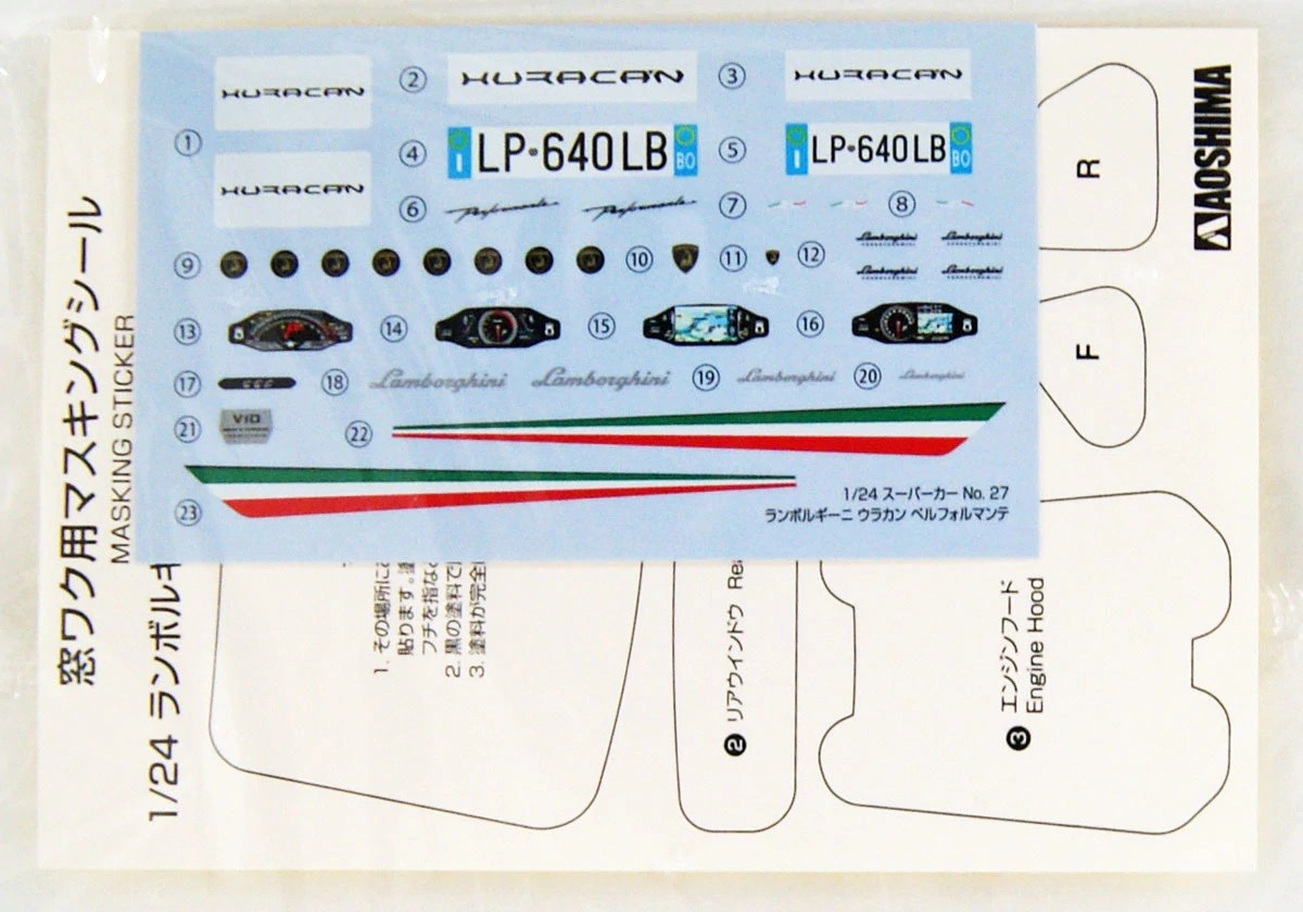 Набор пластиковых деталей для сборки модели автомобиля Lamborghini Huracan performante в масштабе 1/24.