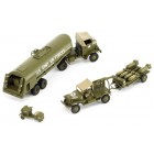 Модель самолета Боинг Б-17 Летающая Крепость вместе с комплектом аэродромной перезарядки. "Летающая Крепость" - это первый серийный американский цельнометаллический тяжёлый четырёхмоторный бомбардировщик. Данный самолёт начал проектироваться в 1934 году в рамках конкурса по созданию берегового бомбардировщика, действующего против кораблей. Через год был создан прототип Model 299, первый полёт которого состоялся 28 июля того же года. После летных испытаний, и многочисленных модификаций заводы фирмы Боинг выпустили B-17 «Летающая Крепость» для ВВС США ровно через 12 месяцев. В общей сложности заводы произвели 6981 бомбардировщик B-17 различных моделей (от опытного Model 299 до B-17G). Данные бомбардировщики участвовали с переменным успехом в Европейском театре боевых действий. Так же сами самолеты оснащались секретным по тем временам бобовым прицелом Norden, что увеличивало точность бомбардировки. Зачастую тяжелые бомбардировщики сопровождались более маневренными истребителями, например Спитфайр. Одна из успешных операций - налет на сортировочную станцию около Руана, Франция. Из 18 самолетов B-17 только 2 получили незначительные повреждения. Данная модель будет интересна моделистам любого возраста увлекающимися эпохой "Второй мировой войны" или же просто любителям поршневой авиации. С помощью данного набора возможно создать интересную диораму с участием наземной техники и обслуживающего персонала. Уважаемые клиенты! Обращаем ваше внимание на тот факт, что элементы набора не покрашены.