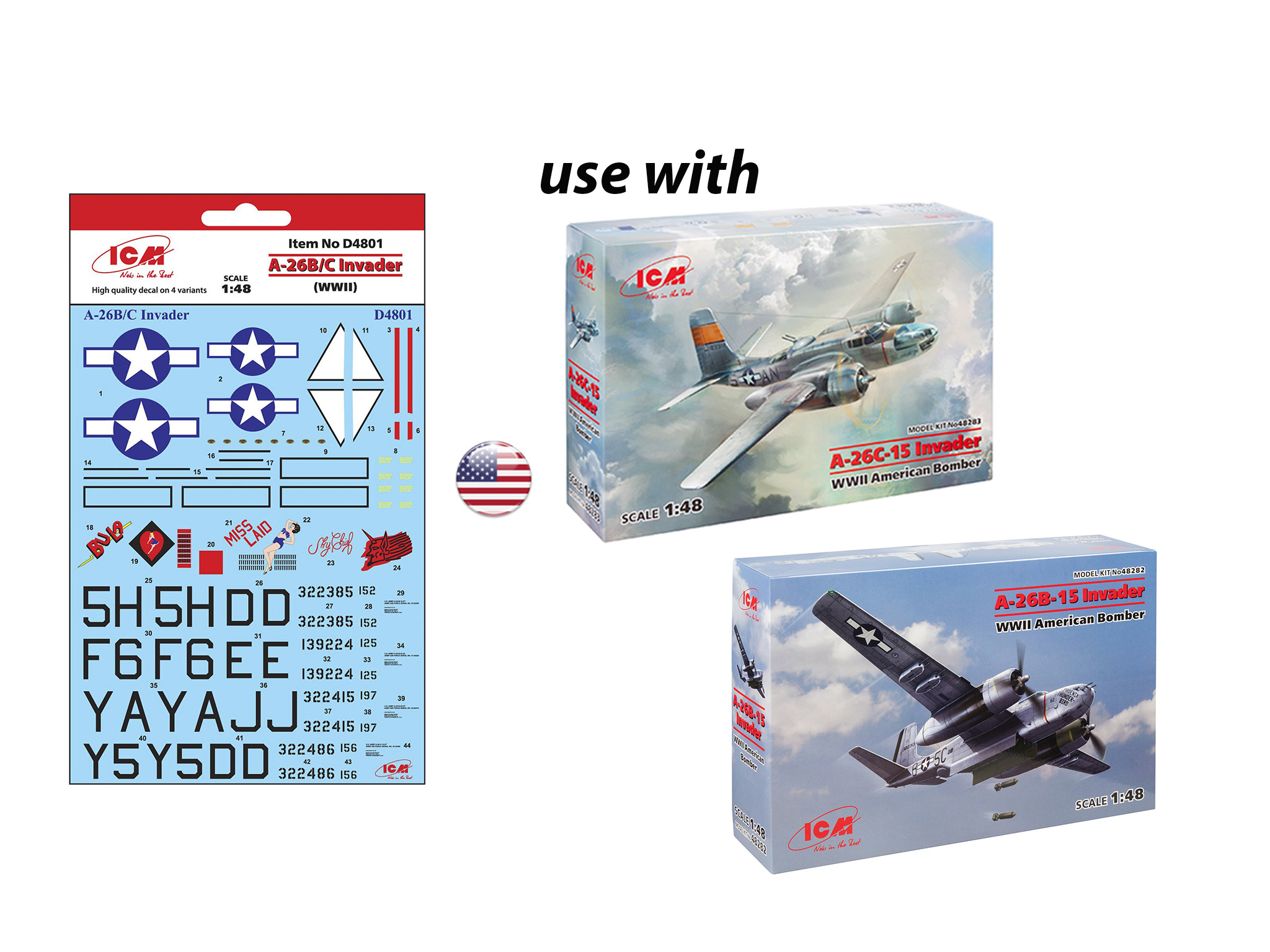D4801 Декаль A-26B/C Инвайдер (II MB) ICM в Иркутске, купить в интернет-магазине, цены, фото