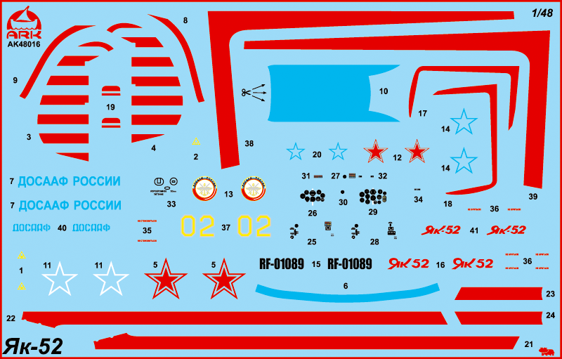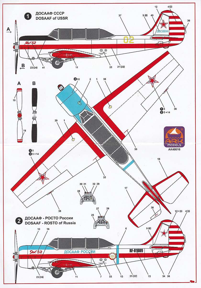 48018 Спортивно-тренировочный самолет Як-52 (в набор входят 2 комплекта пластиковых деталей и детали из смолы) ARK model, 1/48 в Иркутске, купить в интернет-магазине, цены, фото