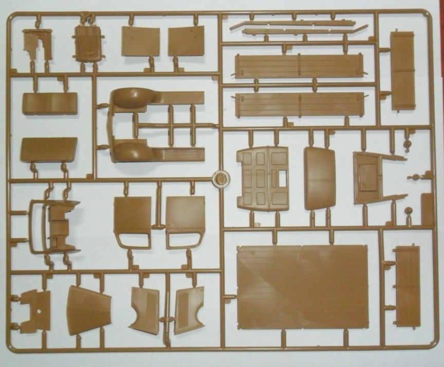 Длина модели 148 мм, высота 63 мм, 188 деталей автомобиля и 30 деталей прицепа, 2 варианта декалей.