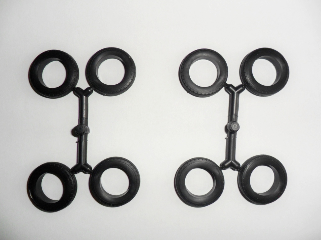 Покрышки из резиноподобного пластика с проработанным рисунком протектора.