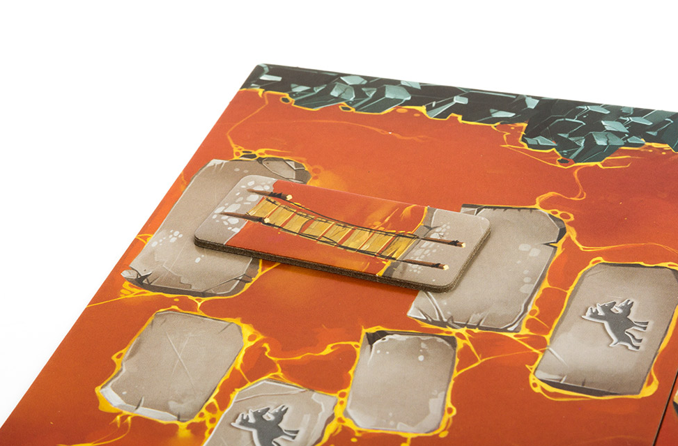 В этой настольной игре великолепные компоненты 7 деревянных фигурок героев (в том числе фигурка корги!) и большой деревянный трёхголовый Цербер. Поле строится из нескольких частей - все они двусторонние, поэтому поле можно собрать по-разному. Иллюстрации на карточках поддержки и коварства также порадуют вас и воссоздадут атмосферу приключения! С помощью наклеек "Достижения" вы сможете отметить значимые моменты ваших партий, а на крышке коробки записать имена героев, так коварно съеденных адским псом.