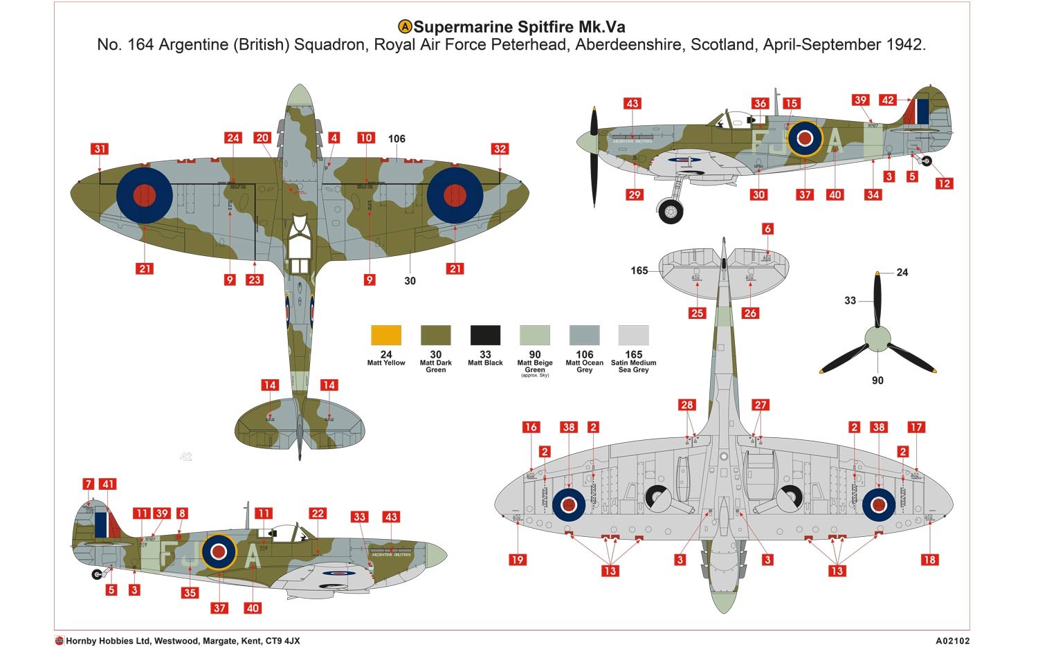 Сборная модель легендарного британского истребителя Supermarine Spitfire Mk.VA, производства компании Airfix, порадует поклонников марки несменно высоким качеством и максимальной приближенностью модели к облику своего исторического прототипа в масштабе 1:72. Модель проста в сборке, состоит всего из 46 деталей, которые отлично стыкуются между собой, позволяя даже начинающему моделисту воссоздать уменьшенную копию самолета. Несомненно, Supermarine Spitfire остался в истории как один из самых важных самолетов Второй мировой войны, а также самый массовый Британский самолет этого типа, который производился на протяжении всей войны. Версия Mk.V Spitfire была выпущена в большем количестве, чем любые другие модификации истребителя и давала Королевским ВВС боевое преимущество на протяжении большей части 1941 года. Поступив на вооружение эскадрильи №92 на Биггин-Хилле, Spitfire Va был оснащен новым двигателем Merlin 45 от Rolls-Royce и оборудован крылом типа «А». Бортовое вооружение модификации "А" состояло из восьми пулеметов "Кольт Браунинг" калибра 7,69 мм с боезапасом по 350 патронов на ствол с ленточной подачей. Мощность нового двигателя позволила этим самолетам стать достойными противниками немецкому Messerschmitt Bf 109. Spitfire Va лучше показывал себя на больших высотах и, как правило, был сильнее вооружен. Как наиболее массовая версия Spitfire Mk V за срок службы претерпел значительные изменения и развитие. Эта сборная модель станет ярким украшением Вашей коллекции!