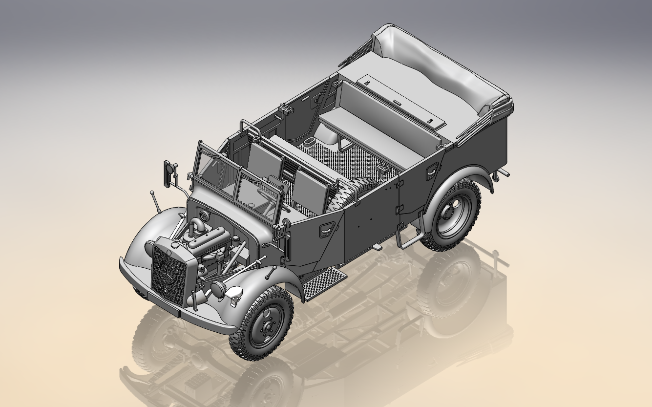 Детализированные мосты, сборная несущая рама, подвеска, редуктор, выхлоп выполнен отдельной деталью.