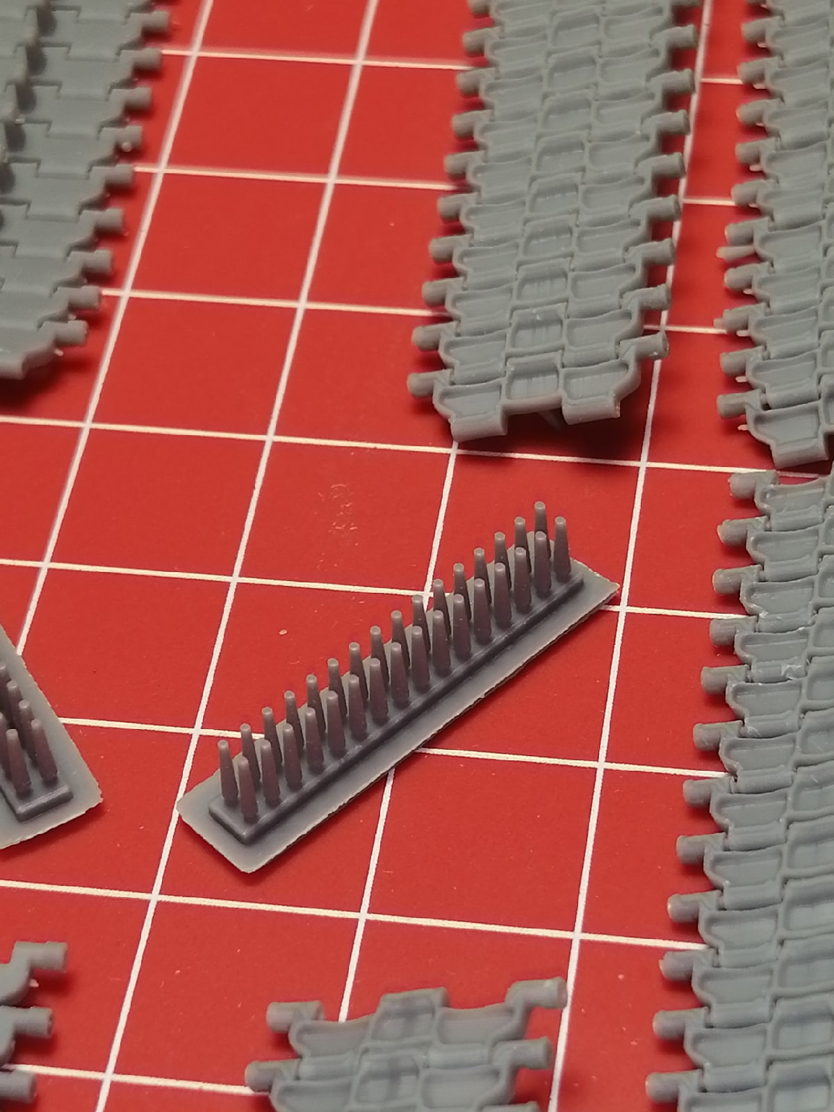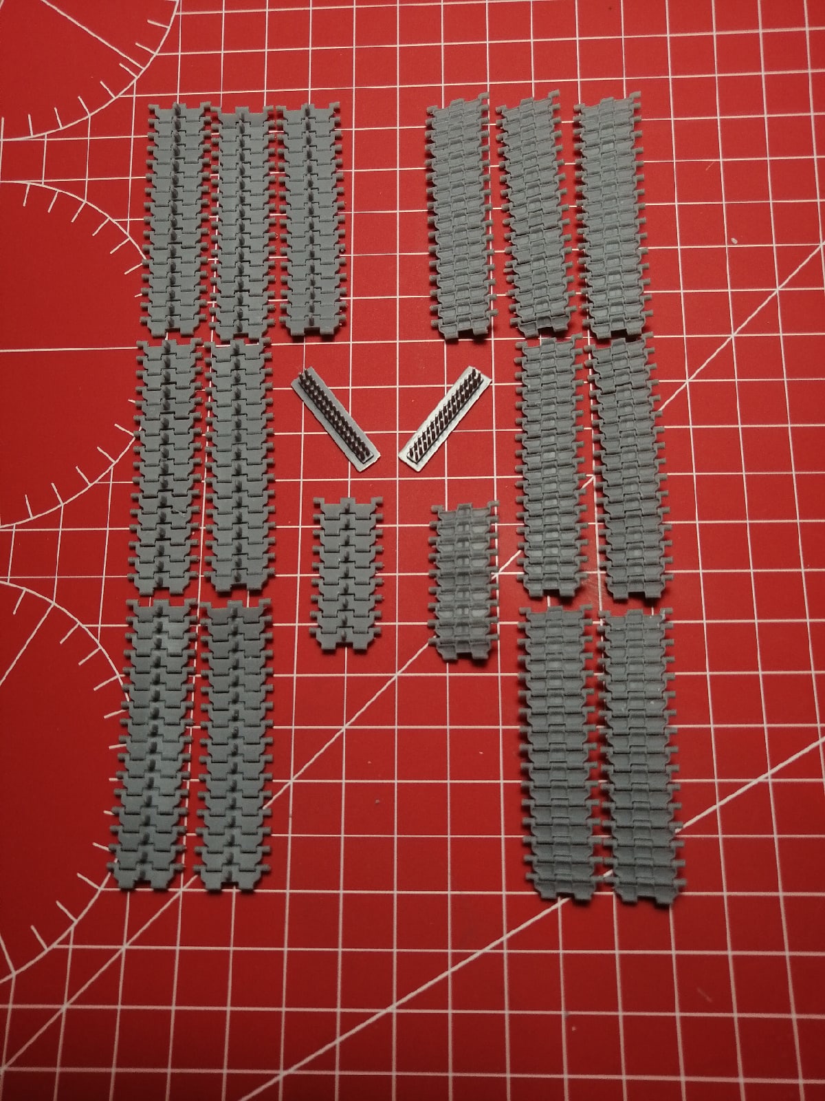 Каждый трак состоит из 8-ми уже рабочих сегментов, нужно лишь соединить их пинами из комплекта и полностью рабочая лента готова!