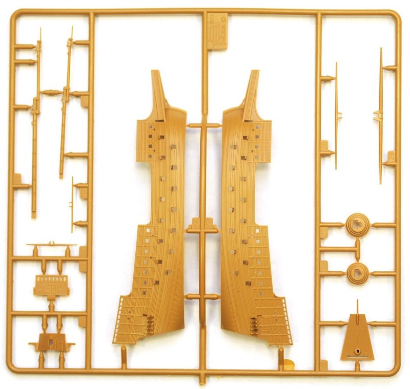 Набор деталей из пластмассы для сборки одной модели корабля.