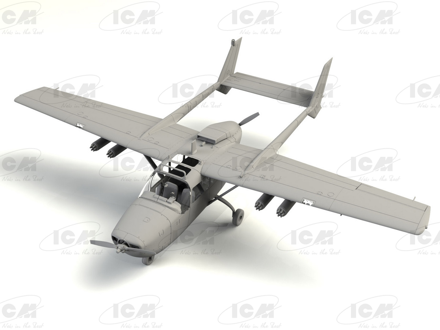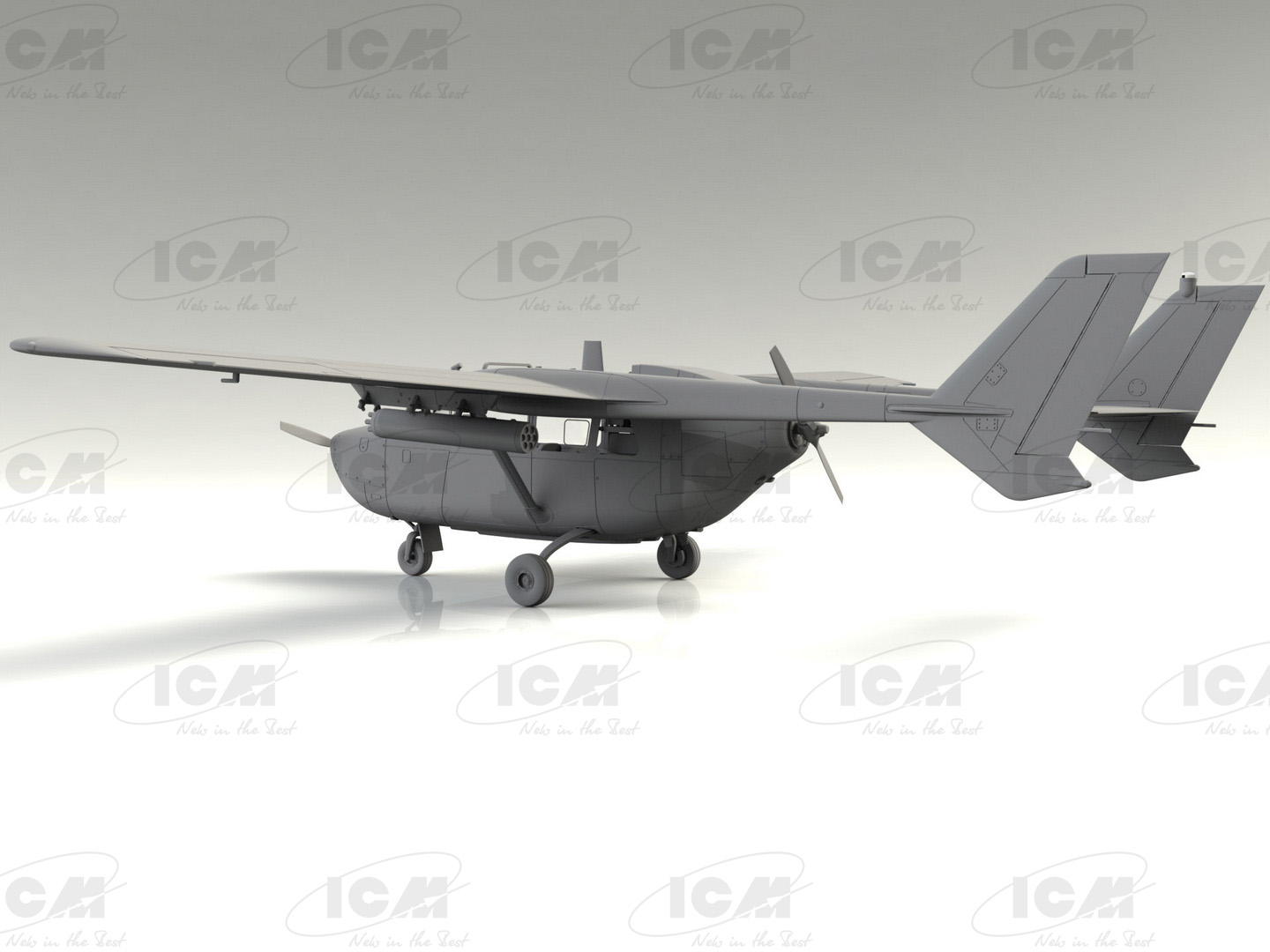 Как и гражданская версия, Skymaster представлял собой недорогой двухмоторный самолет с поршневым двигателем, с одним двигателем в носовой части самолета и вторым двигателем в задней части фюзеляжа.