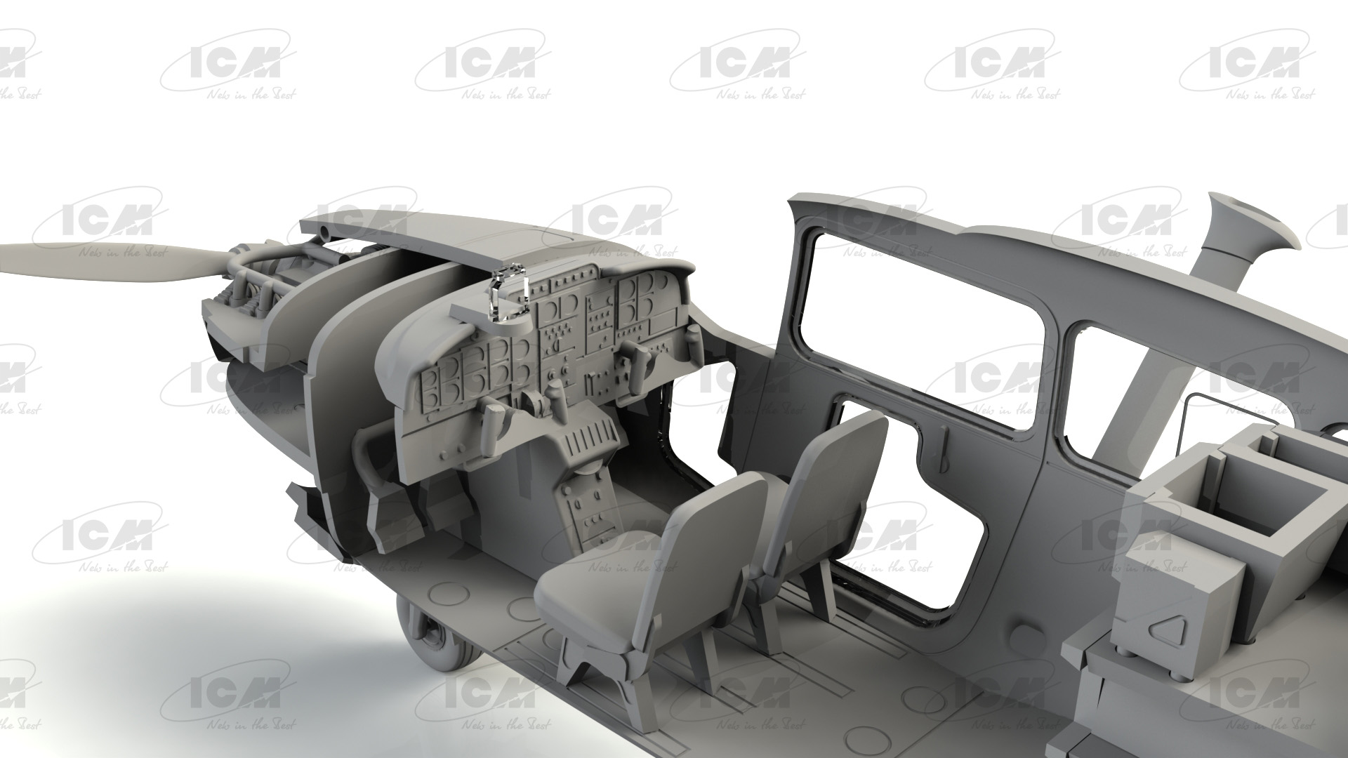 Как и в гражданской версии, «Скаймастер» представлял собой недорогой поршневой самолет с одним двигателем в передней части и вторым двигателем в задней части фюзеляжа.