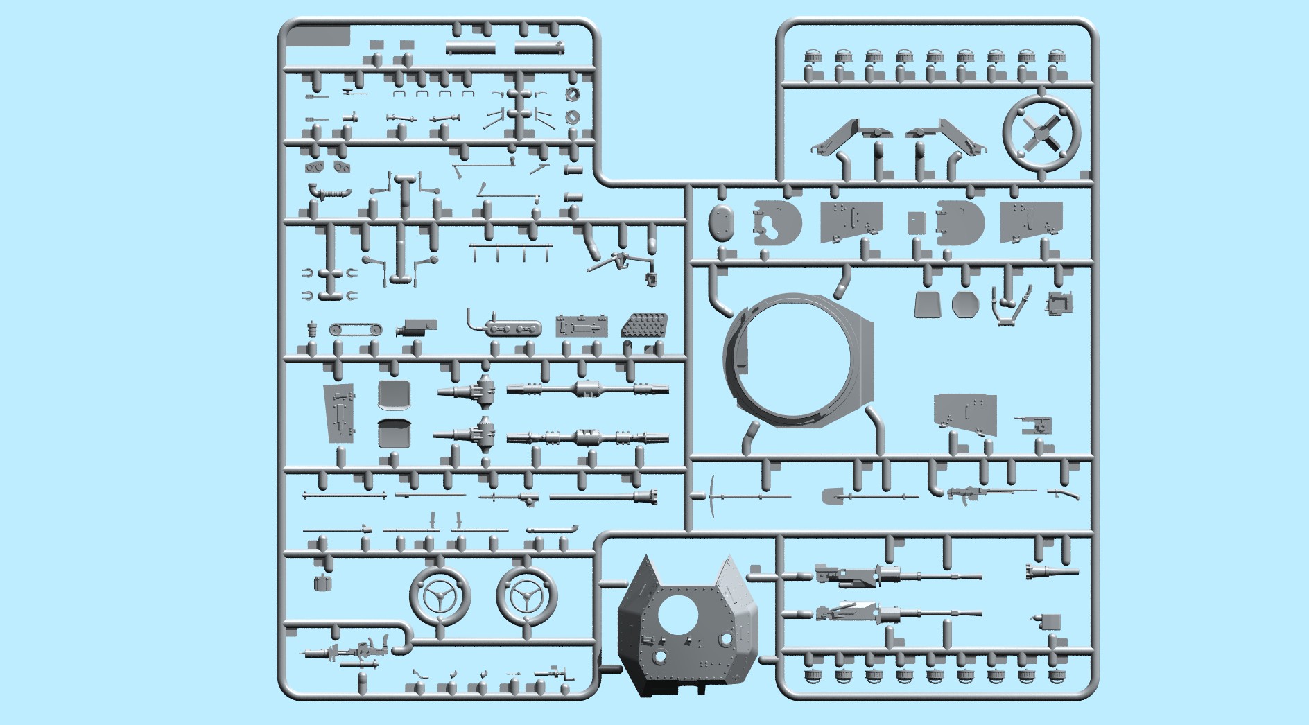 Модель от ICM отличается хорошей деталировкой (проработан как и экстерьер, с множеством заклепок и прочими элементами конструкции, так и интерьер(боевое отделение, отделение управления, двигатель и тд). Так же модель приятна в сборке, детали хорошо стыкуются, а разумная разбивка на детали позволяет показать все прелести деталировки начинки модели.