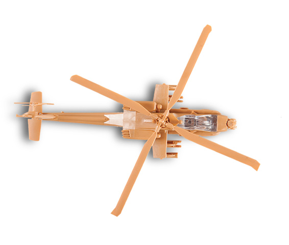 Американский ударный вертолет Апач, в "модельном" масштабе 1/144, ставшая уже традиционной простая и быстрая сборка без клея, отличная проработка деталей. В игровой системе "Hot war", Апач станет великолепной огневой поддержкой с воздуха и основным истребителем танков.